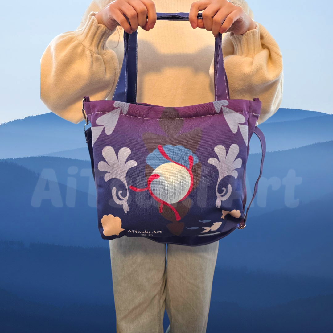 The 2-Way Tote Bag is inspired by the character Hysilens, in the popular game Honkai Star Rail. Easily carry all of your necessities with this bag, which offers enough space for a Nintendo Switch, iPad Pro, notebooks, and more. It features a zipper opening, a small front pocket, and a small pocket inside for easy organization. It also comes with a short handle and an adjustable & detachable long strap for added comfort and convenience.